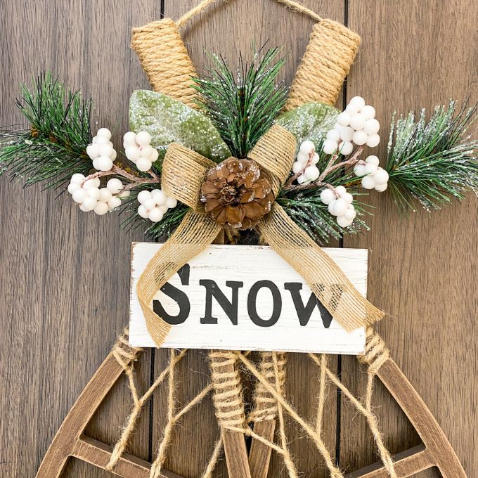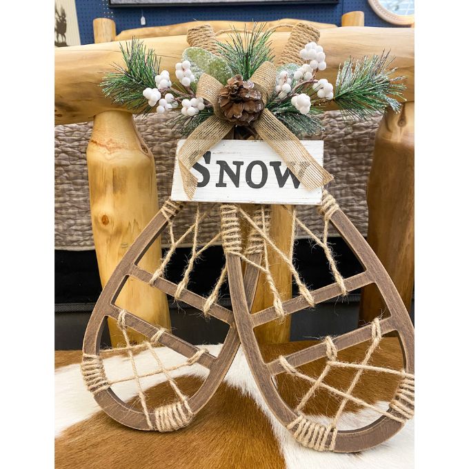 Snowshoes are a fun way to decorate and this cute pair will add the rustic Christmas touch you are looking for. These stylized snowshoes have a pretty floral swag on the top along with a SNOW sign. Keep this pair of snowshoes up all winter long.