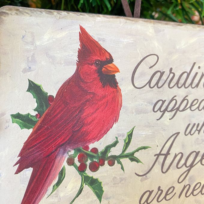 Christmas is a time to remember loved ones and this ornament can serve as lovely reminder during the holiday season. Cardinals Appear when Angels are near is written on this rectangle shaped ornament with a beautifully printed red cardinal.