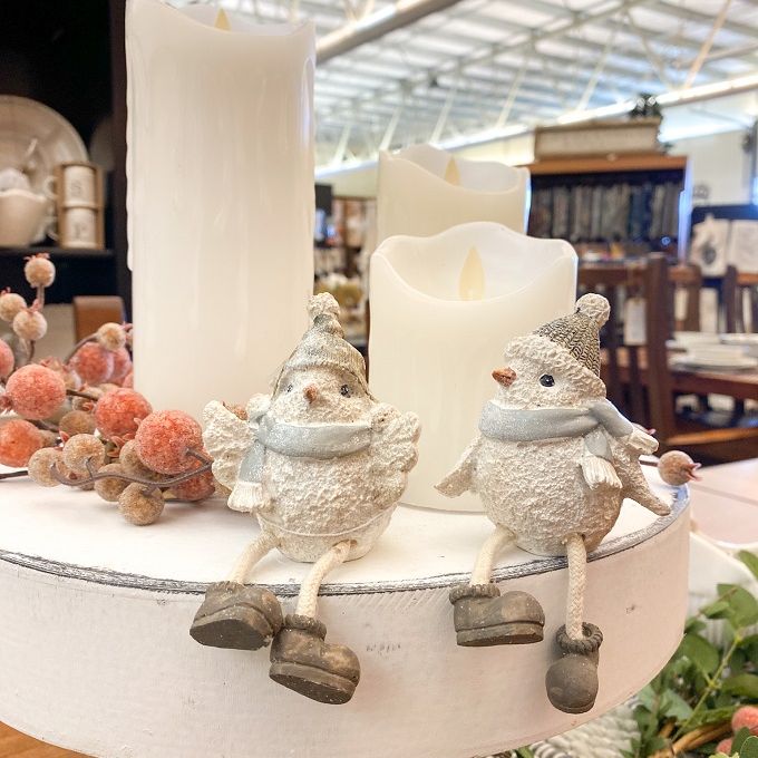 I think we all pay attention to birds a little more at Christmas and I love these two White Birds with Dangle Legs. These guys with their gray hats and scarves are perfect to sit on a shelf and watch the world go by! They are made of resin and their big gray boots on the end of thick strings are fun. Choose from a bird with its wings out or in.