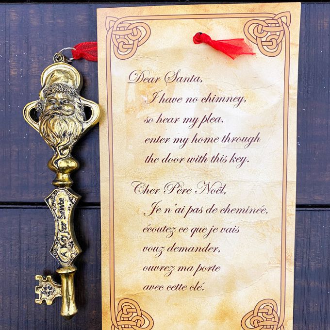 Not everyone has a chimney so how does Santa do it year after year? Here is the key! This wonderful Santa's Key Ornament is the perfect gift this holiday and come with a card that says: Dear Santa: I have no chimney, so hear my plea, enter my home through the door with this key.