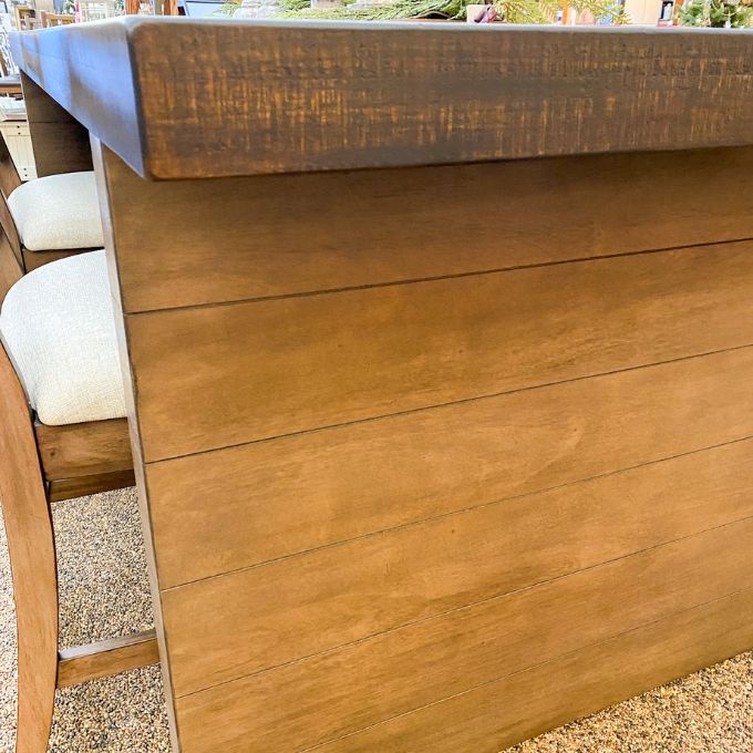 The Boise Counter Table is a great option for many dining needs. Its versatility allows for use as a casual dining table, a kitchen island with plenty of room for seating, or a place for game night. The table top has one of our favourite finishes, the tobacco leaf, and the table bottom is the light brown - buckskin finish. You'll love the combination of rustic and modern for your dining space.
