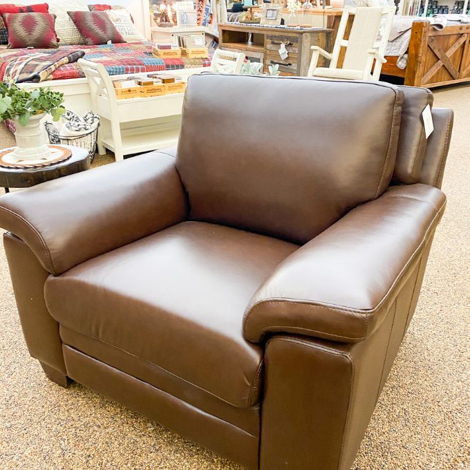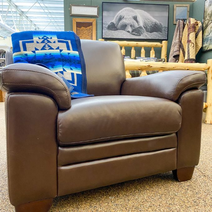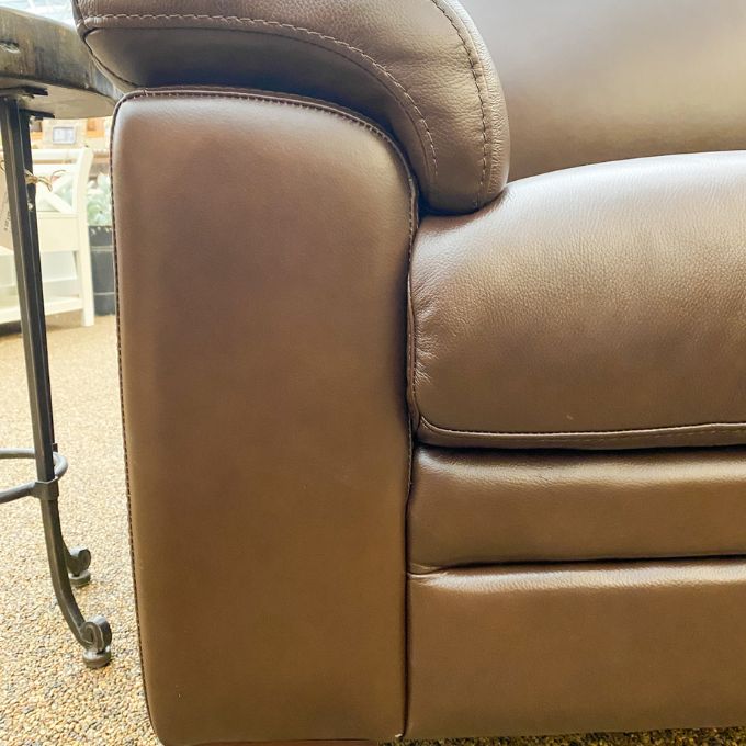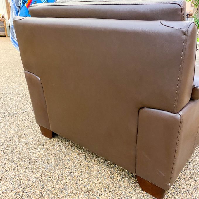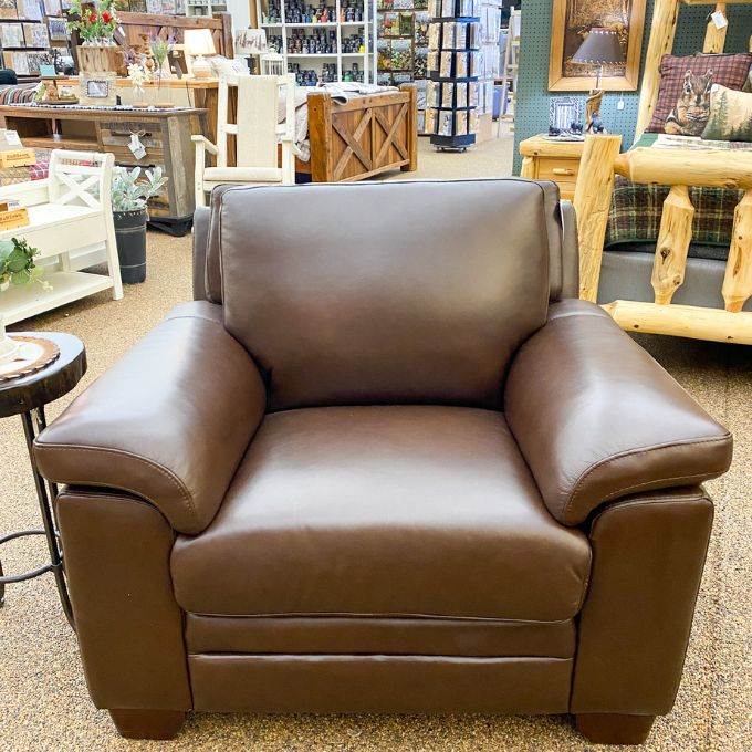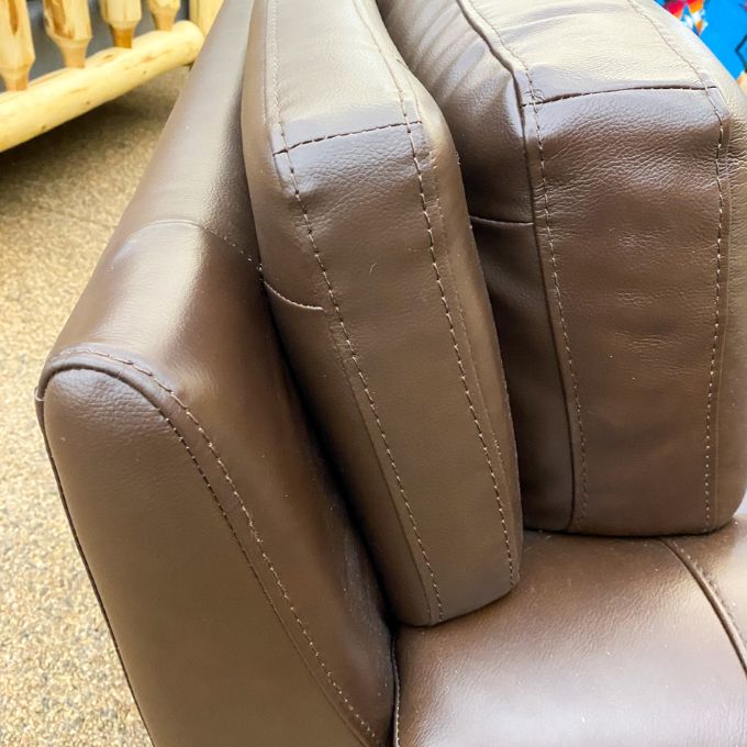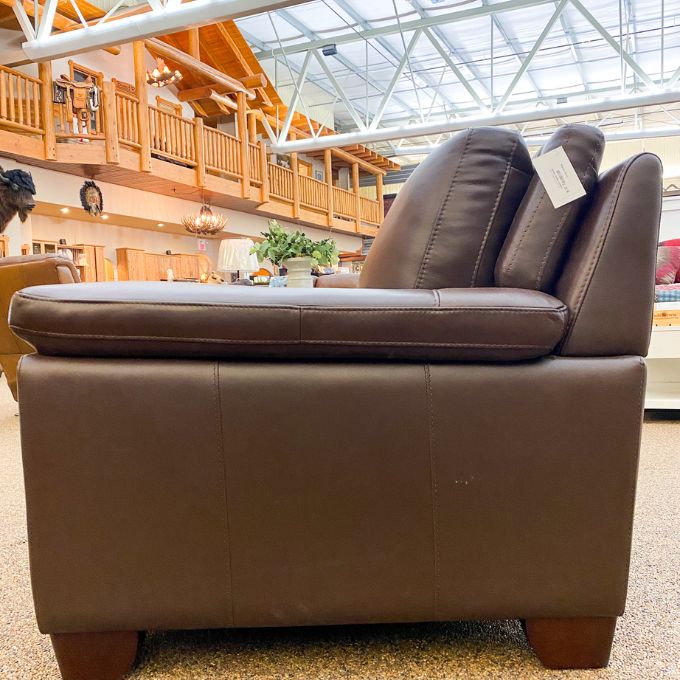 You are simply going to love this chair. Enjoy the broad leather design and the double pillow backrest and of course the cushioned arm rests - you'll be curling up and enjoying a good book for hours. The frame is hand-crafted with North American solid wood and reinforced with corner blocks for maximum durability. Sinuous spring base with foam padded sides and back provide added support and comfort. Enjoy the padded outside arms and backs. The seat is constructed with four-layer seat cushions composed of memory foam, individually pocketed coils and high-density foam. Solid wood feet in a dark brown finish.