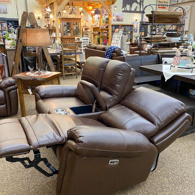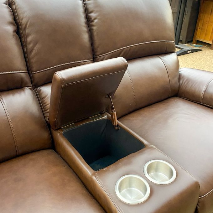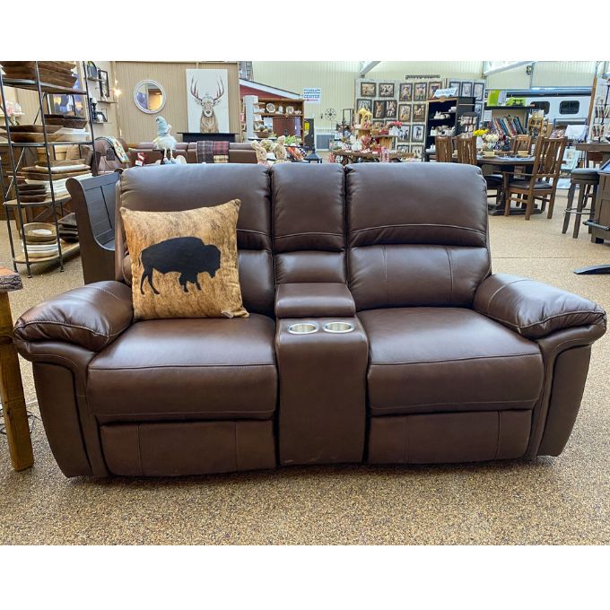 The Monica Reclining Love Seat combines contemporary elegance with ultimate comfort. This power recliner features smooth full-extension capability, allowing you to stretch out completely while relaxing. Choose from premium leather options that age beautifully and resist wear. Cushioned arms provide supportive comfort for hours of lounging and the console provides a spot for remotes and your favourite beverage. Perfect for modern rustic interiors, the Monica transforms any living space into a personal retreat where style meets functionality.