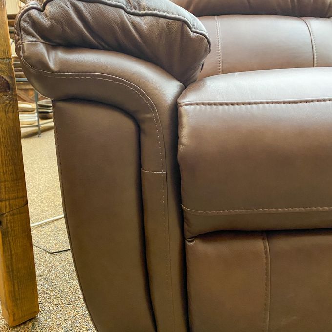 • Premium Leather: Top-grain leather is upholstered on the seating areas and armrests. Leather match is used on the sides and back.