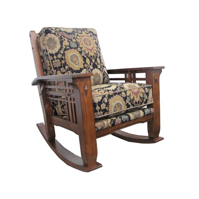 Thick, plush cushioning and the country design influence make this chair the perfect piece for your home. It is not only going to be the most comfortable spot in your room, it is sure to become an heirloom piece for your family. This rocker is hand crafted in the United States and the durability and craftsmanship is outstanding.
