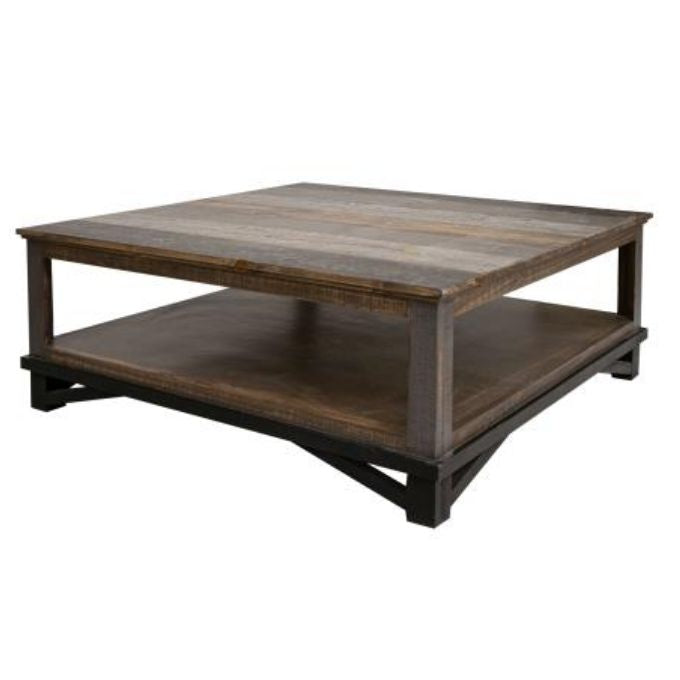Complement your farmhouse and rustic style with the Loft Brown Coffee Table. The Loft Brown Coffee Table is constructed using pine wood that has been hand-stained and distressed is complemented by hand-forged, no-chip iron. The built-in shelf gives you lots of space for decor and books. This pine table is finished in a water-based acrylic lacquer finish in gray and brown tones for an updated “reclaimed wood” look. The Loft Brown Coffee Table is full of rustic-farmhouse charm and has the look of reclaimed wood without the reclaimed price.