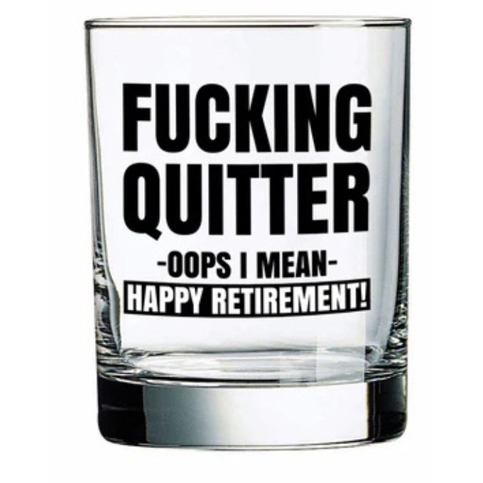 The F*#king Quitter Whiskey Glass comes boxed ready for gifting. We recommend the top rack of the dishwasher for easy cleaning and to keep your glass looking great longer.