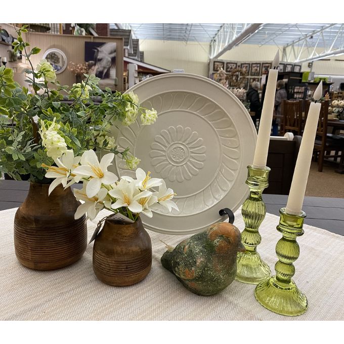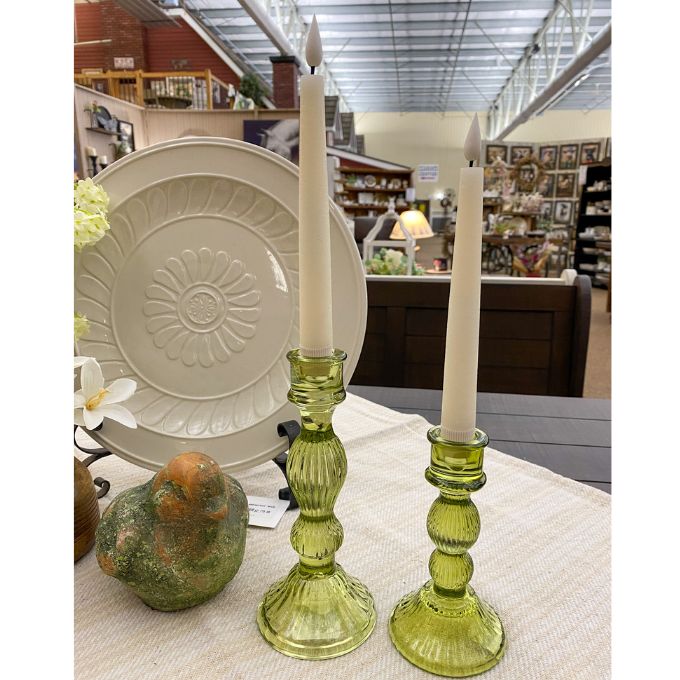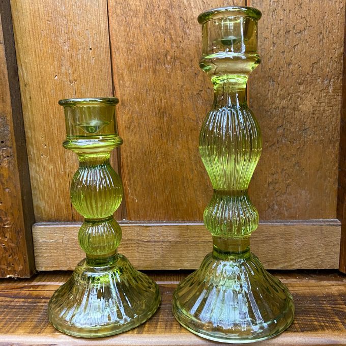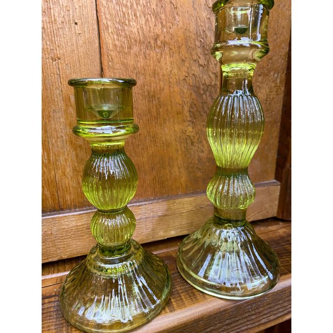 Olive Glass Candle Holders - Set of Two
