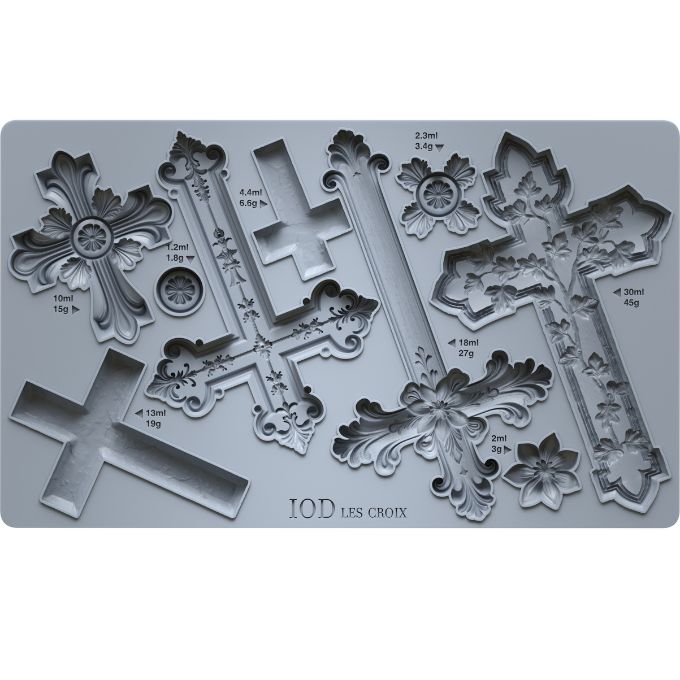 The Les Croix Mould by IOD is 9 moulds on a 6" x 10" sheet.