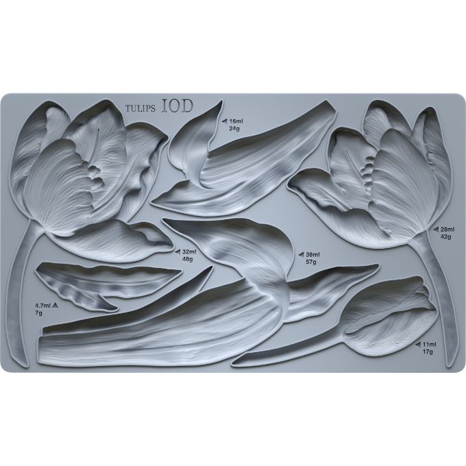 The Tulips Mould by IOD is 6 moulds on a 6" x 10" sheet.