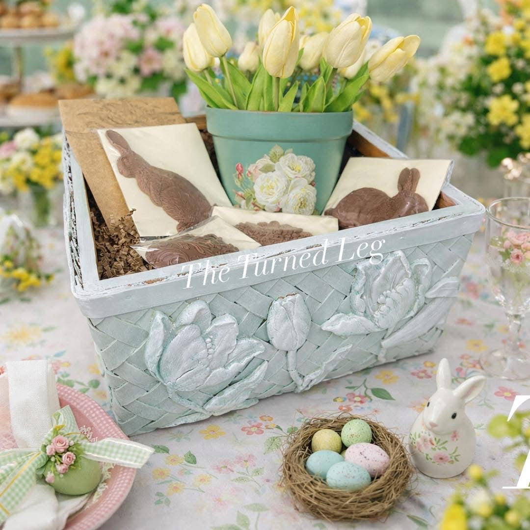 The petals have an organic sense of movement drawn from the vintage reference, and the leaves feature the detailed veining and natural curl you expect from our IOD moulds. With multiple elements, you can build so many arrangements. Imagine how darling it would be built up inside one of our arched or oval wood blanks, and how perfect it would be for Easter signage paired with our Spring Garden or Les Lapins Moulds.