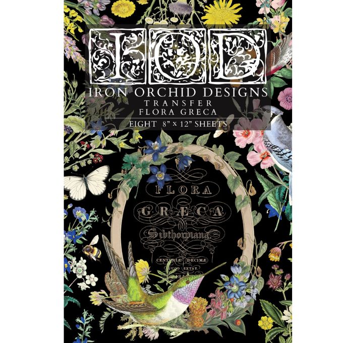 The Flora Greca Transfer Pad by IOD takes its name from a ten-volume botanical masterpiece published between 1806 and 1840, often described as one of the most beautiful and ambitious works of its kind. We’ve incorporated several of the ornate frames from this historic collection, pairing them with artwork inspired by the detailed floral studies of Jane Landon, who was renowned for her precision and expressive botanical renderings. Together, these elements create a foundation that feels both sophisticated and true to its classical origins.