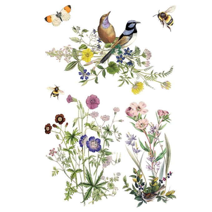 To complement the florals, we added a selection of exotic birds, delicate wildflowers, fruit, and bumblebees—elements Sally loved for their elegant, slightly elevated feel and the way they distinguish this transfer from more traditional botanical sets. The result is a collection that feels unique, graceful, and quietly luxurious, with plenty of room for creative interpretation.