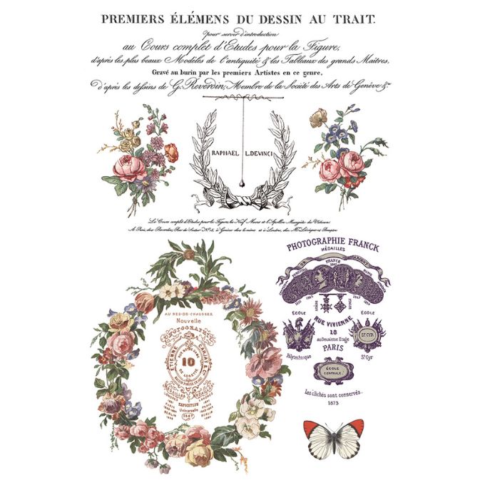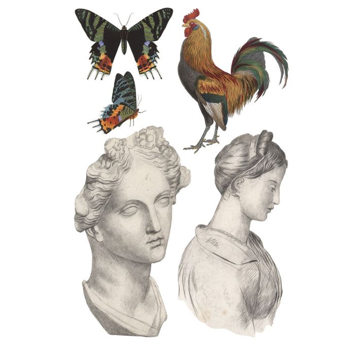 Named after the iconic Parisian district, the Saint Ouen Transfer Pad by IOD is inspired by the unexpected treasures Sally discovered in the area’s famed brocantes—France’s eclectic flea and antiques markets. The artwork comes directly from pieces she sourced there: Grecian statuary prints found down a quiet lane, fine art fragments, handwritten typography, and other curiosities chosen for their character and charm.