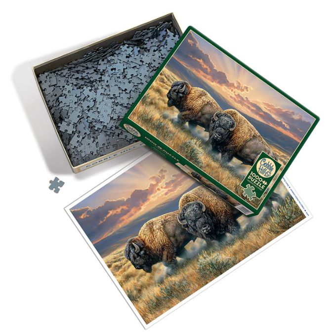 The power and majesty of the buffalo make Dusty Plains an enchanting puzzle for anyone who enjoys wildlife. A 1000 piece wildlife challenge. The finished size is 26.625" x 19.25".