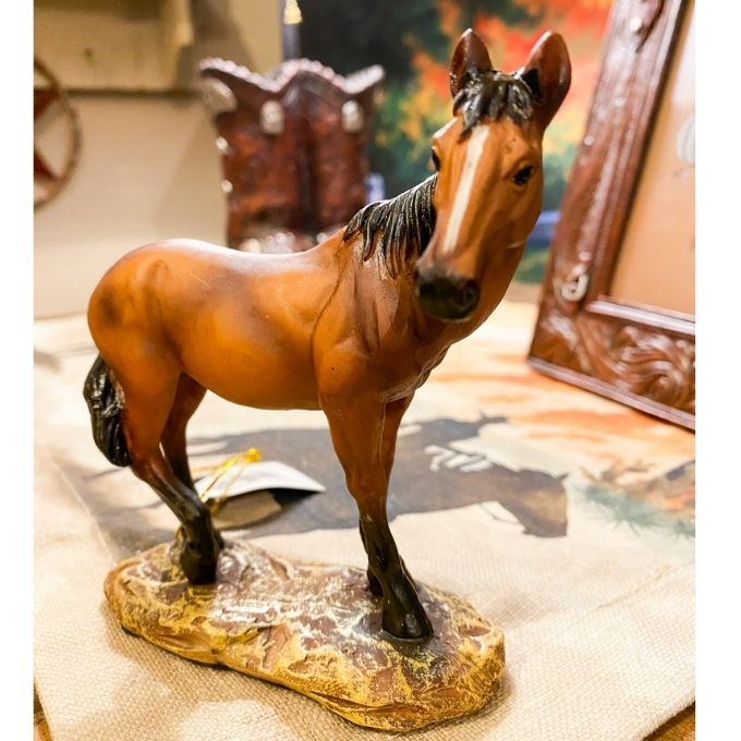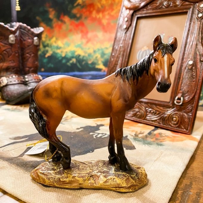 Add a simple touch of western to your home with this Standing Brown Horse Figurine. This resin horse stands 4.25" tall and the base is 1.5" x 3.5".